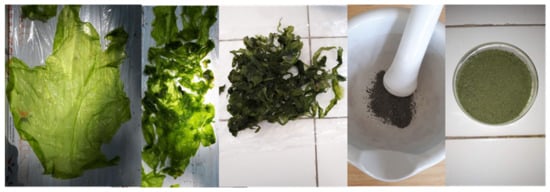 Samples of algae were collected on 27 June 2020 from the Black Sea coast, SE Romania, Constanta municipality, Casino area (Figure 1). The selected species of stranded macrophytes was Ulva rigida, because it presents an opportunistic character, grows up to 30 cm in size, adapts easily to environmental conditions and is one of the most common species in the Romanian littoral (Supplementary Materials Figure S1a,b).