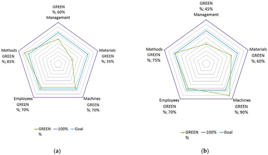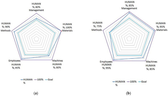 • a n s a r e a , p e r s p e c t i v e , i —answer for question i in the area and perspective, area ∈ {Human, Lean, Green}, perspective ∈ {Management, Materials, Machines, Employees, Methods} (quantitative values according to Table 1);