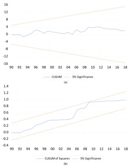 - Brown, R.L.; Durbin, J.; Evans, J.M. Techniques for testing the constancy of regression relationships over time. J. R. Stat. Soc. Ser. B Methodol. 1975, 37, 149–163. [Google Scholar] [CrossRef]