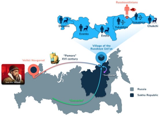- Nikitina, S.E. Russkiye arkticheskiye starozhily Respubliki Sakha (Yakutiya): Problemy sokhraneniya unikal’noy kul’tury [Russian Arctic Old-Settlers of the Republic of Sakha (Yakutia): Problems of Preserving a Unique Culture]. In Russkiye Arkticheskiye Starozhily Yakutii: Sbornik Nauchnykh Statey [Russian Arctic Old-Settlers in Yakutia: A Collection of Scientific Articles]; Nikitina, S.E., Antonov, E.P., Eds.; IGIiPMNS SO RAN: Yakutsk, Russia, 2019; pp. 16–33. [Google Scholar]