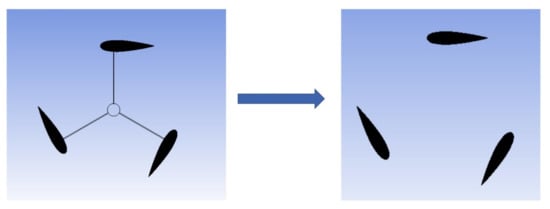 The geometric parameters of the vertical axis offshore wind turbine selected in this study are based on the experimental research conducted by Marco Raciti Castelli et al. [25,26]. This study shows that when the center of rotation of the wind wheel is one-quarter of the chord length of the blade, the aerodynamic performance of the wind wheel shows a higher level. The geometric parameters of the vertical axis offshore wind turbine used in this study are shown in Table 1.