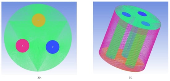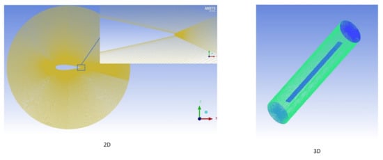 When we perform 3-D meshing, the calculation domain of the x-y plane adopts the parameters of the 2-D calculation domain, and the height in the z-axis direction is selected as 2000 mm, which is slightly larger than the height of the blade.