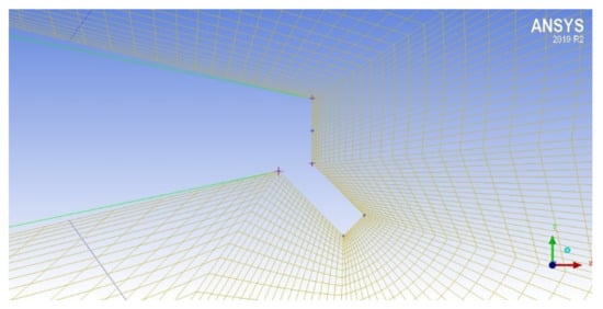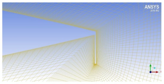 After determining the size of each part of the computational domain, meshing is required. As the air flow near the wall of the blade is more complicated, it is necessary to set the height of the first layer of the grid near the wall of the airfoil when performing CFD simulation to ensure the accuracy of the simulation results. The grid height of the first layer can be estimated by Equation (2):
