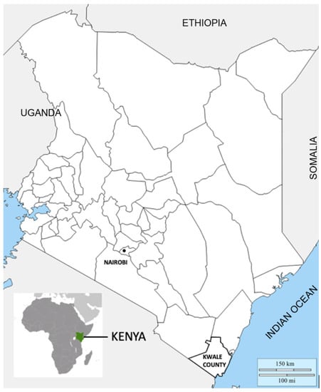 Map of Kenya showing the location of Kwale County and map of Africa showing the location of Kenya (adapted from D-maps [104]).