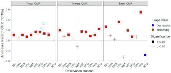 The statistical results of Mann-Kendall’s test on the anomalies trends of OMR for maximum, mean, and minimum temperature.