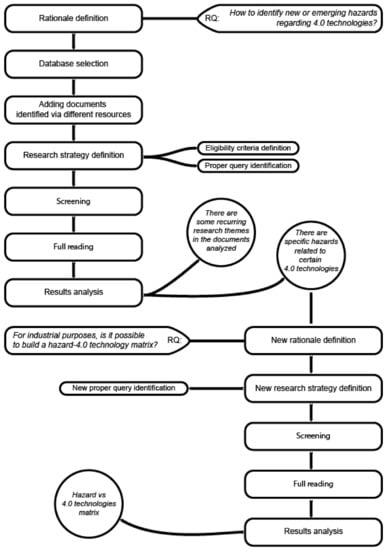 The presented paper aims at identifying new and emerging hazards for the workers caused by the spread and establishment of 4.0 technologies in production environments, through the analysis of the technical issues that emerge before the implementation of legal regulations. The paper specifically discusses hazards and not risks, since the analysis does not provide a probabilistic assessment. Indeed, hazard identification represents the usual starting point for the evaluation of the deriving risks. The presented analysis was performed following the steps shown in Figure 1.