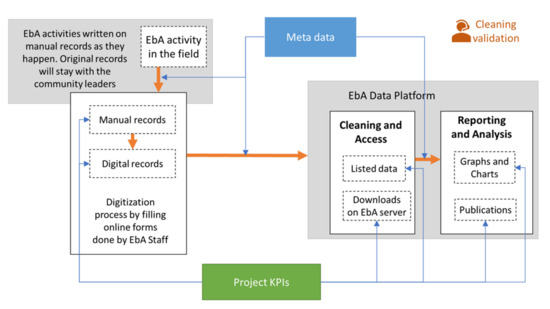 The above Methods section describes the data and information that are collected, flow through the platform, and used to produce statistics and support decision making.