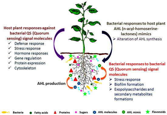 Bacterial quorum sensing signaling mediated interaction between host plants and bacteria.