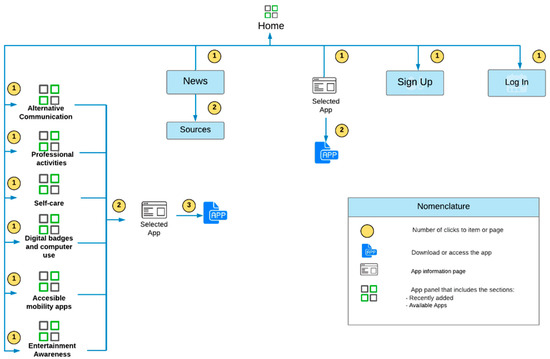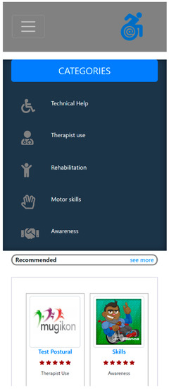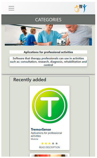The categorization of the catalog embraces apps for professional activities, self-care apps, digital badges, alternative communication apps, entertainment and awareness apps, and accessible mobility apps. Categorization allowed for friendly and easy-to-understand navigation for users.