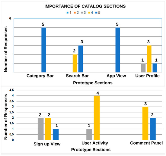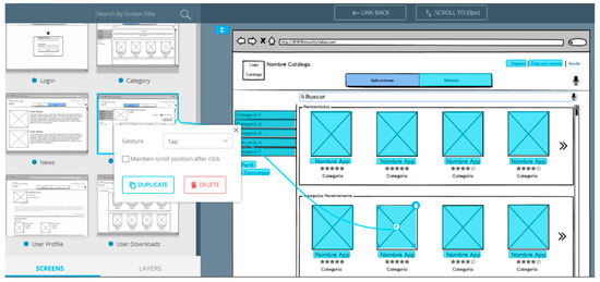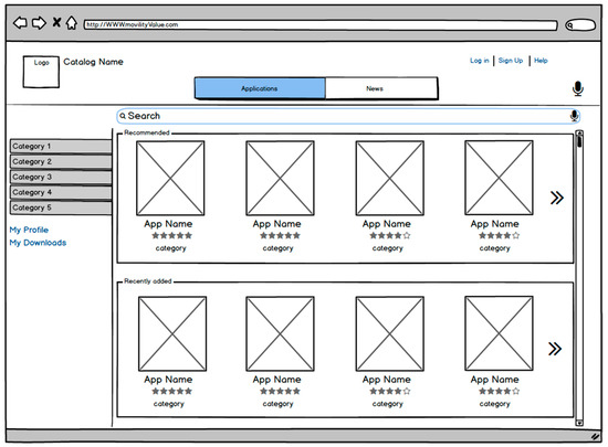 The evaluation of the low fidelity prototype allowed for the fact that the most critical sections of the catalog were the categorization bar and the app screen to be identified. These sections were implemented with a higher hierarchy in the middle-fidelity prototype. From the evaluation of the middle-fidelity prototype, it was possible to obtain users’ feedback about the navigation of the site and the parameter of the apps’ categorization. These features are part of the high-fidelity prototype.