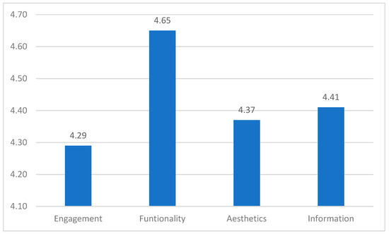 The MARS evaluation was performed by 25 testers on the high-fidelity prototype; the following score was obtained for each quality subscale, as shown in Figure 14.