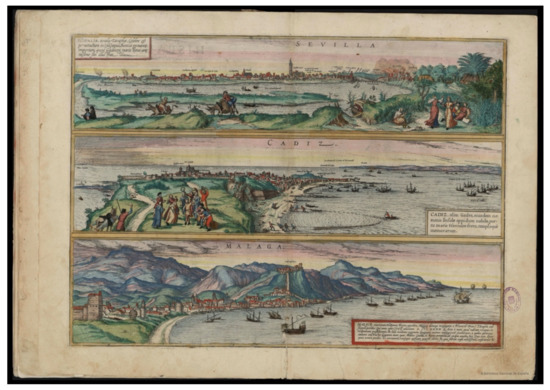 Views of Seville, Malaga and Cadiz. Braun, G., Hogenberg, F., Galle, P., and Kempen, G. (1577).