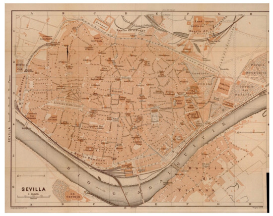 Plan of Seville. Baedeker, K. Espagne et Portugal Manuel Du Voyageur: Avec 7 Cartes et 47 Plans; Leipzig: Karl Baedeker; Paris: Paul Ollendorff: Leipzig/Paris, 1900.