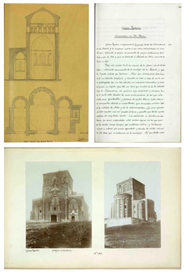 Among the different national actions linked to the Spanish government in the 20th century, the first is more ambitious and innovative, even if might not be completed. The promotion and development of the Monumental and Artistic Catalogue of the Nation since 1900, did not result in an effective method of heritage protection; however, is a compilation of information that we see today as a valuable source of information for heritage research and studies [25]. The reasons for the failure of this undertaking can be related to three aspects that evolved quickly in the 20th century: the concept of cultural heritage, the instruments of heritage protection, and the method of drawing up catalogues and inventories [26]. During the development of the provincial catalogues, the different authors recognized the importance of the graphic documentation, and among them they highlighted the value of photography, which would become the main graphic element in most catalogues (Figure 6) [27].