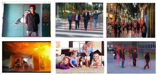 People are recognized by using DNN once the training model is ready, as shown in the architectural diagram. Furthermore, DNN has attracted the attention of researchers for fire detection and predicting fire flow. Deep learning methodology differs from traditional computer vision-based fire detection in major ways. The first is that the characteristics are automatically collected in the network after training with a vast quantity of different training data rather than being studied by an expert. The lack of strong data for assessing and assessing the recommended approach is one of the key drawbacks of vision-related activities. To identify an appropriate dataset, we investigated datasets that have previously been employed in research. However, the diversity of data coming from the video is insufficient for training, and we cannot expect it to perform well in realistic fire detection circumstances. By extracting frames from fire and smoke films and gathering photographs from the internet, we aimed to construct a diversified dataset. Fire photos from Foggia’s dataset and photographs from the internet make up our training set. Our dataset was varied by using smoke images from several online sites. In order to create our final fire-smoke dataset for use in this investigation, we extracted frames from videos and randomly picked a few photos from each one. Figure 4 illustrates a sample training dataset for fire detection. This dataset is taken from different resources such as the internet, live images, etc. This training procedure has been carried out in another system that has a better configuration as the training model inside Raspberry Pi is still challenging. Figure 5 illustrates a sample training dataset for people detection. For training, we have taken standard parameters set from previous studies [33], as shown in Table 3.
