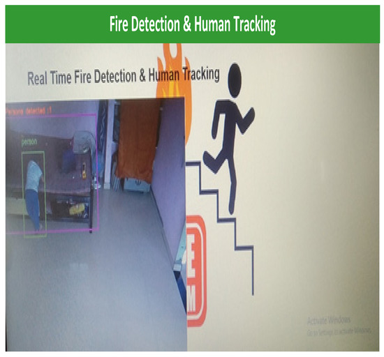 The functional block diagram is discussed to realize fire detection and people counting, as shown in Figure 3. For the detection of human presence and their counting inside a room, MobileNet SSD is utilized, which is a single shot detector that has been designed by using transfer learning procedures. The existing MobileNet SSD model’s knowledge was kept in its first 24 layers, and the last four layers towards the output are trained with the images collected in our datasets that are more relevant to the test application area’s conditions and scenarios. After training was completed, we obtain a model that has cumulative knowledge of the existing MobileNet SSD model and also of the images from our datasets, which thereby makes it more reliable. Similarly, for the fire detection objective, ResNet101 was used, which is considered one of the most efficient neural network models that can be used as the backbone for fire detection application. Furthermore, out of its total 101 layers, the last 15 layers are trained with the dataset that we collected from various sources using transfer learning. After training was completed, the model file was then transferred and deployed in Raspberry Pi.