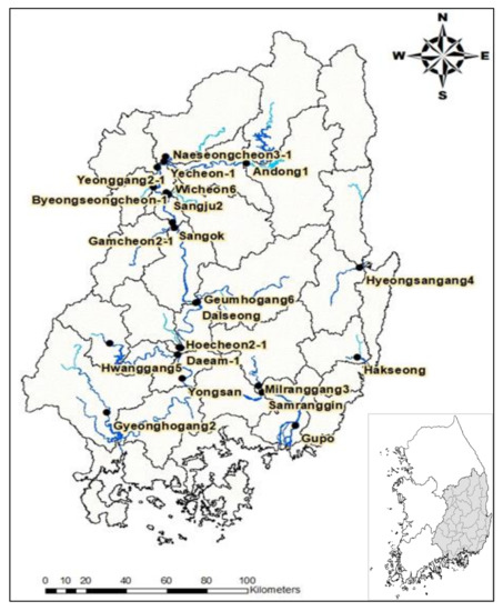 - Water Resources Management Information System (WAMIS). Available online: http://www.wamis.go.kr (accessed on 15 December 2019).