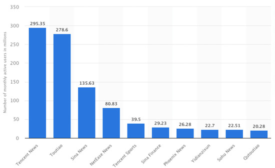 - Number of Monthly Active Users (MAU) of the Leading News Apps in China in December 2020. Available online: Https://www.Statista.Com/Statistics/910787/China-Monthly-Active-Users-on-Leading-News-Apps (accessed on 15 July 2021).