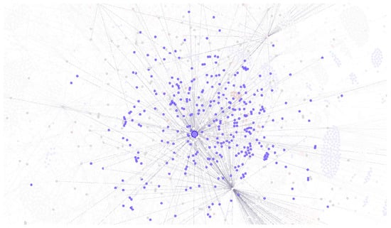 As can be seen from Figure 5, this community contains 443 organizations, and it can be further divided into two small communities. Although the Institute of Process Engineering, Chinese Academy of Sciences, is not the largest degree node in this community, it is the absolute center of the small community on the left.