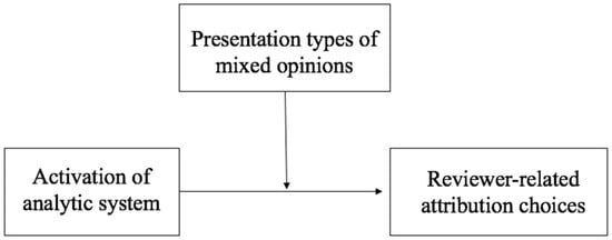 Generally, the analytic system will be activated if the metacognitive experience of the current task reduces the individual’s intuitive confidence. If information is processed easily or fluently, intuitive (heuristic system) processes will guide the judgement. If information is processed with difficulty or disfluency, however, this experience will serve as a cue that the task is difficult, thereby activating more elaborate (analytic system) processing [,,]. In line with the existing literature, we thus predict that experienced difficulty or disfluency due to the way in which mixed opinions are presented will reduce an individual’s intuitive confidence, promote individuals’ information processing through the analytic system, and thereby actively enhance reviewer-related attribution choices.