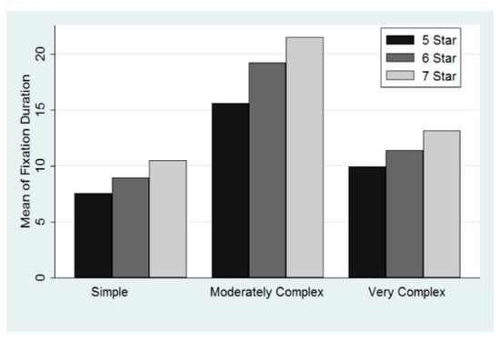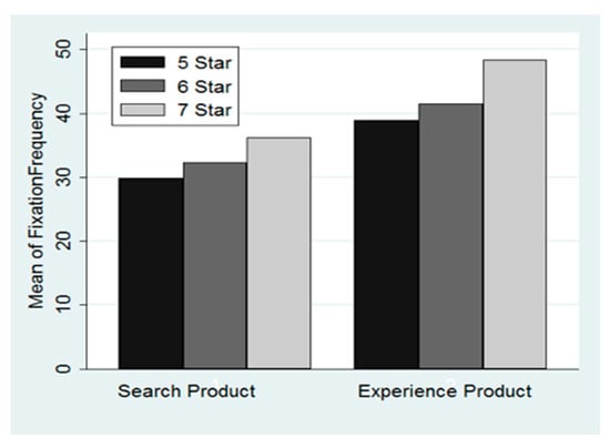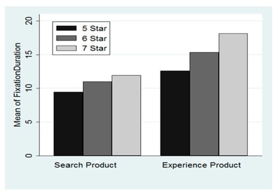 Finally, participants were presented with three pictures, as shown in Table 2: in all pictures, the distribution including ratings from 40 reviewers were exhibited on a scale ranging from 1 to 10 stars, and distributions with a combination of high dispersion (variance > 8.0). On the right side of each star rating, there was a horizontal bar showing the number of reviewers which had assigned that rating, while at the top of each distribution the overall average rating was presented. Next, participants needed to make attribution choices [] for each picture by responding to the item “Do you think the product or the reviewer was more responsible for the ratings above?” (1 = “the product,” 7 = “the reviewer”), with higher (lower) scores indicating greater reviewer (product) attribution choices. The stimuli were adapted from the study of He and Bond []. To maintain tighter control of confounding variables in the experiment, the three pictures within each group contained similar characteristics. The viewing task was employed to ensure that each participant had a consistent goal during the eye-tracking studies, given that task can affect visual attention []. In the eye-tracking studies, the viewing time of each picture was self-paced by the participants without any time restrictions (We did not give time instruction for two reasons. First, the time needed for browsing varies among participants in the real world. Second, as stated before, we assume that the ultimate attributional choice is caused by the functioning of the analytical system, whether due to the direct effect of analytical system activation or to an analytical answer proceeded by the heuristic system. Therefore, we did not discuss the time course assumption [,].). The presentation order of the pictures was pseudorandomized for each participant in each experimental condition, but the content was identical. After completing the questionnaire, participants were thanked and dismissed.
