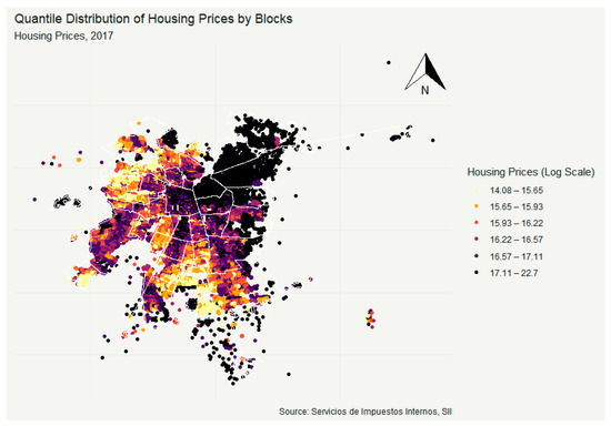 Historically, the residential structure in Latin American cities has been an inverse relationship between income levels and distance to the city center. Under this configuration, location decisions exerted by higher-income classes have shaped cities’ distribution, and residential areas were sharply separated by socioeconomic classes [1]. Santiago, Chile’s metropolitan area, is an exceptional case that revealed this particular situation in the 1960s. At this time, higher-income socioeconomic groups enjoyed better urban services, accessibility to commercial activities, and a free pollution environment. By contrast, working classes were excluded from the city center to peripherical areas, in housing previously occupied by former middle-income groups, with several urban problems such as overcrowding and low-quality sanitary facilities [1]. Over time, the geographical agglomeration of inhabitants by socioeconomic classes or residential segregation was intensified and exacerbated by the military rule in the 1970s. This authoritarian government assumed a subsidiary role in the housing market and forced public housing projects to the urban fringes [2]. Scarpaci, Infante, and Gaete (1988) [3] found evidence that the transition from a traditional welfare state to a laissez-faire economy undermined the state’s role in housing markets, and the state planned residential segregation as social and political control. Additionally, the drastic reduction of public expenditures motivated the introduction of private urban planners who started to lead Chilean cities’ urban development. The return to democracy in the 1990s did not change the subsidiary role of government and perpetuated residential segregation in Santiago’s Metropolitan Area. According to Rodríguez and Arriagada (2004) [4], Santiago’s socioeconomic residential segregation is particularly intense compared to other urban agglomerations in Latin America. Although this problem is mentioned several times in housing planning policies or urban policies, in practice, there have not yet existed direct public policies concerned with reducing residential segregation.