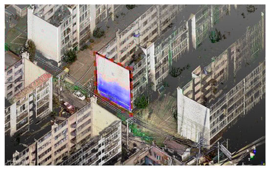 Third, the ground smoothness behind Building E was analyzed to determine the risk associated with the terrain surrounding the target building based on point cloud data. The analysis results showed that there was a difference in the displacement between the terrains around the building that ranged from 620.00 mm to 760.00 mm. This indicates that changes in terrain displacement occurred due to building ground subsidence caused by the earthquake.