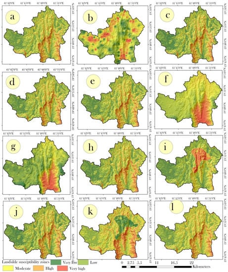 3.1.5. Generation of the Landslide Susceptibility Maps
