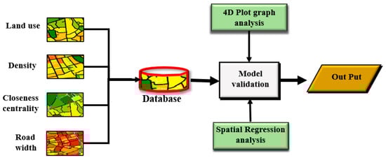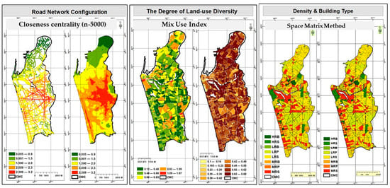 Therefore, the study suggests that street accessibility, land-use diversity, and building density are not independent variables, and density of a given area can be changed as a function of the changes in accessibility and land use (refer Equation (5)). Accordingly, the study focuses on validating this relationship by using a real ground data set in selected case study areas.