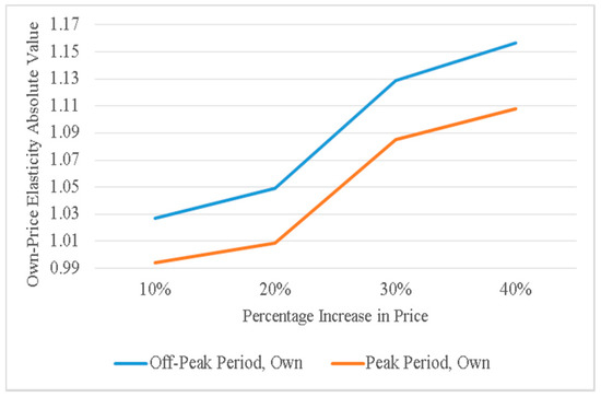 According to the corresponding data and calculation method, own-price elasticity we obtained during peak period is −1.049028, and that during off-peak period is −1.090438.
