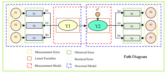 Usually, a structural equation model is developed with two main components, a structural model and some measurement models. The measurement model involves latent variables, observed variables and related measurement errors. For example, Figure 2 explains the structural equation model investigating the effect of LV Y1 on LV Y2., Where, the arrows indicate the direction of the effects, ellipses show the LVs, rectangles represent measurement variables (MVs) and circles show the measurement errors. The model is analysed through confirmatory factor analysis (CFA) when directional arrows between Y1 and Y2 are replaced by the correspondence two-way arrows.