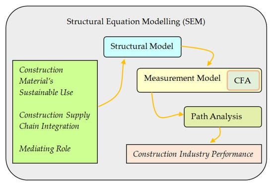 Researchers have applied SEM in construction research to examine the medication effects on performance of construction projects, bonding relationship and collaborative behaviour. For instance, Iyer and Jha (2003) [] applied SEM and evaluated that if the materials supplier are engaged at the project planning stage, they have influential role in determining the contractors’ supervision and project growth. Sarkar et al. [], studied different variables to evaluate the mediation role of construction material providers on contractors. Molenaar et al.’s [] examined the multiple effects on contract disputes between owners and construction materials contractors with the help of SEM. Lee et al. used SEM to study the effects of different variables on and the user satisfaction in terms of the construction management efficiency []. Xiong et al. (2014) [], studied the influence of participant performance factors on contractor satisfaction through a structural equation model. Likewise, Chen et al. (2012) [] investigated the success variables of construction partnering using structural equation modelling. Chinda et al. (2008) [] adopted a structural equation model to evaluate the construction safety culture.