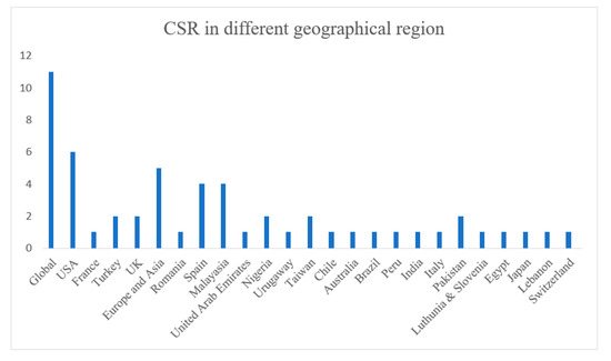 Although many scholars have started to publish academic articles on CSR, the longitudinal study carried out by Ref. [12] on CSR and environmental analysis is still considered a pioneer CSR study, with three thousand, seven hundred and forty citations [13]. Recently, in-depth investigations have been carried out from various perspectives in different sectors and geographical regions. Prior reviews were related to accounting [14,15]. Others were related to small and medium-sized enterprises (SMEs) [16,17].