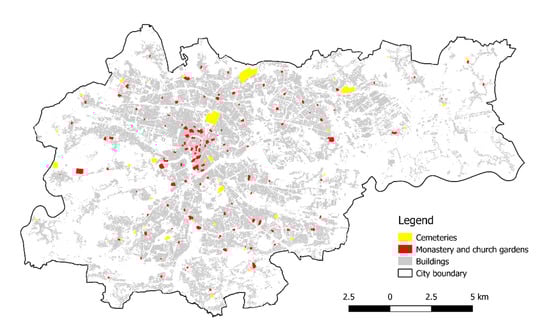 Cemeteries, monasteries and church gardens in Krakow. Source: own elaboration.