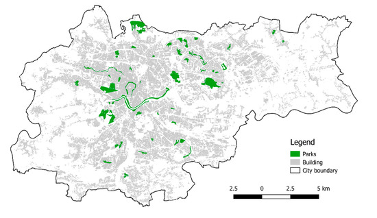 - Gałaś, S.; Gryga, M. Evaluation of availability of green areas in urban areas, taking Kraków, Poland as an example. In Public Recreation and Landscape Protection—With Nature Hand In Hand? Fialová, J., Pernicová, D., Eds.; Mendel University in Brno: Brno, Czech Republic, 1–3 May 2017; Available online: https://docplayer.net/65275894-With-nature-hand-in-hand.html (accessed on 13 November 2020).