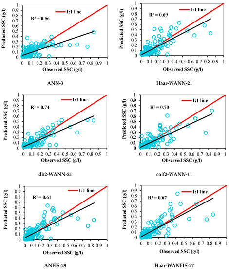3.3.2. WANN/WANFIS Models for Daily SSC Prediction