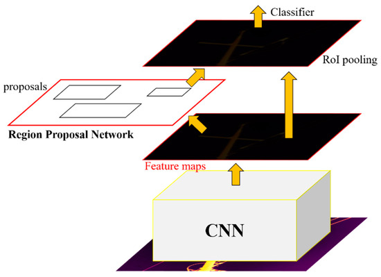 Finally, the output of the Faster R-CNN is the four coordinates of the boxes and the probability that the objects in that IRT image are of a particular class. In the overall structure, the detector network and ROI pooling training are the same as in the previous version of Fast R-CNN. The architecture of the Faster R-CNN detection pipeline is shown in Figure 4.