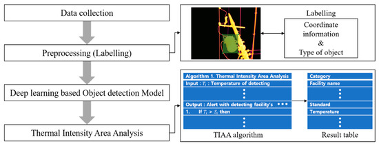 In this section, an intelligent fault detection system is proposed for diagnosing mechanical facilities via IRT images and deep learning-based object detection algorithms. This system consists of three stages; Figure 2 is a schematic of the system.