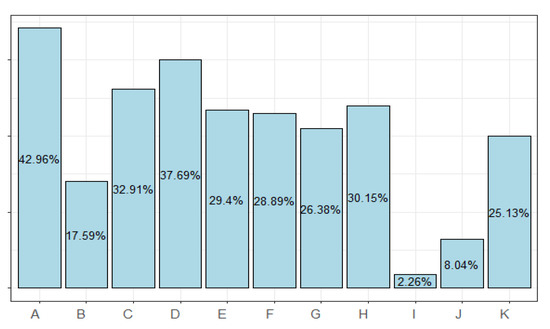 | G | 8.29% | 15.33% | 37.94% | 38.44% | 22.6% | 37.9% | 26.6% | 12.8% | 0.30 | <0.001 |