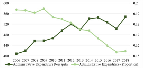 | Administrative expenditure (per capita) | 1119 | 780 | 634 | 449 | 358 | 336 | 268 | 347 |