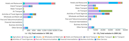 - Liu, J.; Chen, X.P.; Zhang, Z.L. Features and factors decomposition of carbon dioxide emission of China’s tourism industry. Resour. Ind. 2017, 19, 67–76. [Google Scholar]
