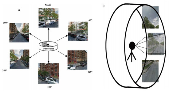 Google Street View (GSV) images covered from multiple (a) horizontal and (b) vertical angles [28].