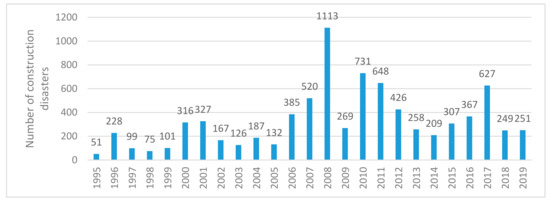 Number of construction disasters by category in 1995–2019 [47].