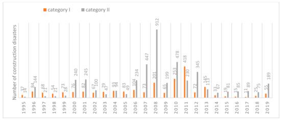 Number of category II (random causes) construction disasters in 2004–2019 [47].