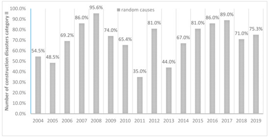 - a steady upward trend showing the predominance of construction disasters caused by random events over non-random events is noticeable (Figure 8),