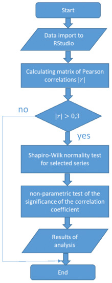 For the analysis, well-known and reliable correlation methods, the linear Pearson method and the non-parametric Spearman method, were chosen [48]. The Shapiro–Wilk test was selected due to its use with small datasets (n < 100).