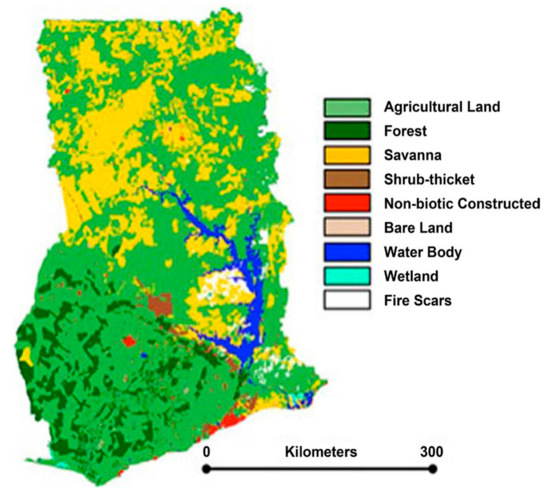Map of Ghana’s agricultural area [63].