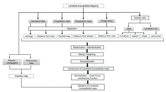 - Basharat, M.; Shah, H.R.; Hameed, N. Landslide susceptibility mapping using GIS and weighted overlay method: A case study from NW Himalayas, Pakistan. Arab. J. Geosci. 2016, 9, 1–19. [Google Scholar] [CrossRef]