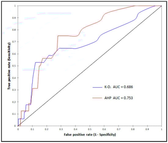 Evaluation of the quality of predictive landslide maps represents a primary step in this field. Therefore, different methods were attempted, such as landslide density analysis (Ld), Prediction Rate Curve (PRC), and Area Under Curve (AUC) of Receiver Operating Characteristic curve (ROC) [100]. In this work, two methods were applied. The first method is based on the utilization of the ground truth map of landslides with the aim to compare the produced landslide susceptibility maps. The quality of these maps was concluded in comparison to the ground truth map (Figure 5). In order to achieve the objective of this method, a numerical scale (1–5) has been assigned to the predictive map classes. The lowest value corresponds to zones with lower susceptibility to landslides; the highest value corresponds to areas with higher susceptibility to landslides (Table 6). Furthermore, two assumptions based on the location of the landslide event on the ground truth map of the landslide were taken: