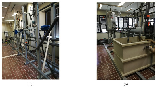 Two-phases mixture experimental process plant used for testing and data collection. A fluid is pumped by using another fluid at higher pressure through the Venturi effect. (a) Pipeline; (b) vertical separator, tank and control valves.